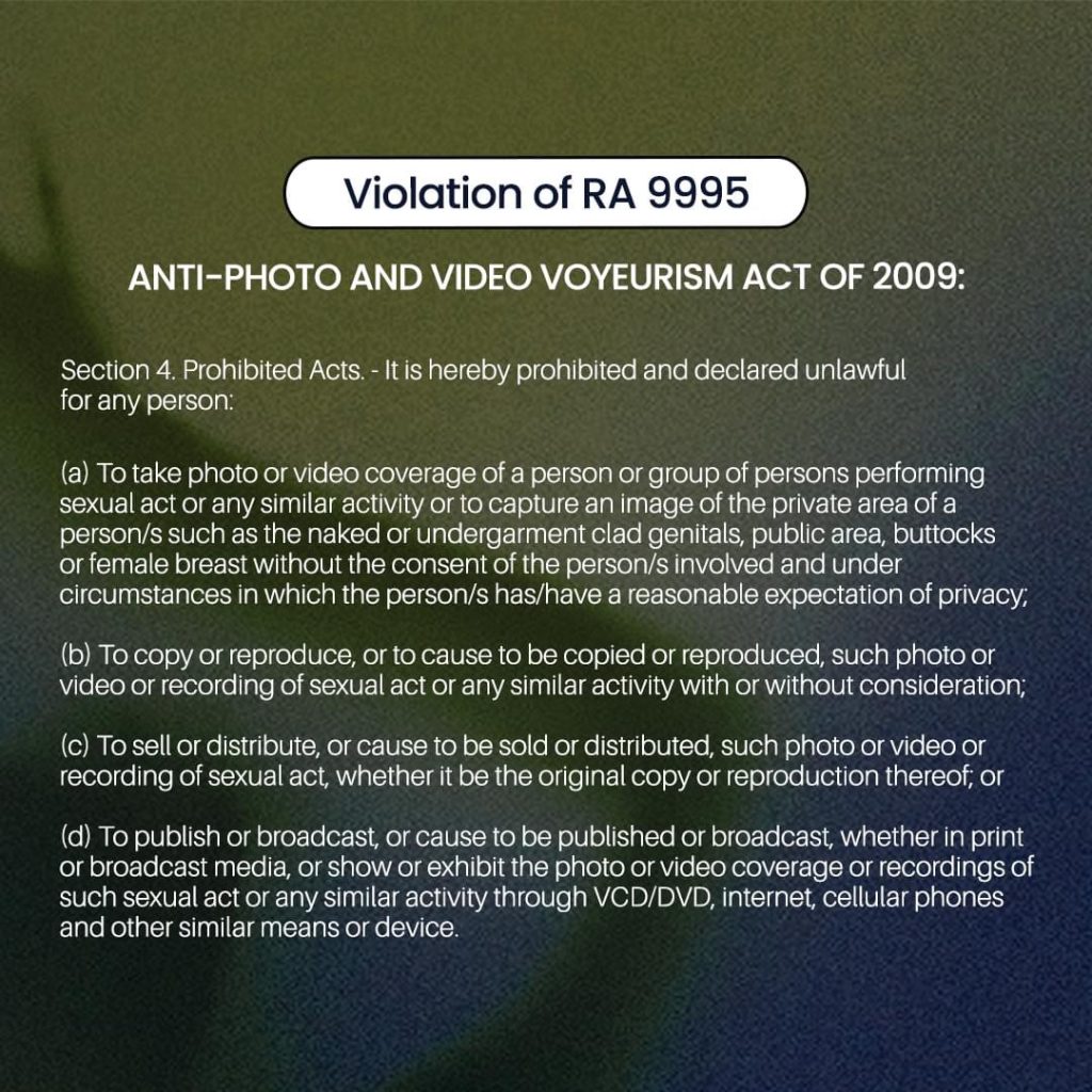 •Violation of RA 9995 or the Anti-Photo and Video Voyeurism Act of 2009