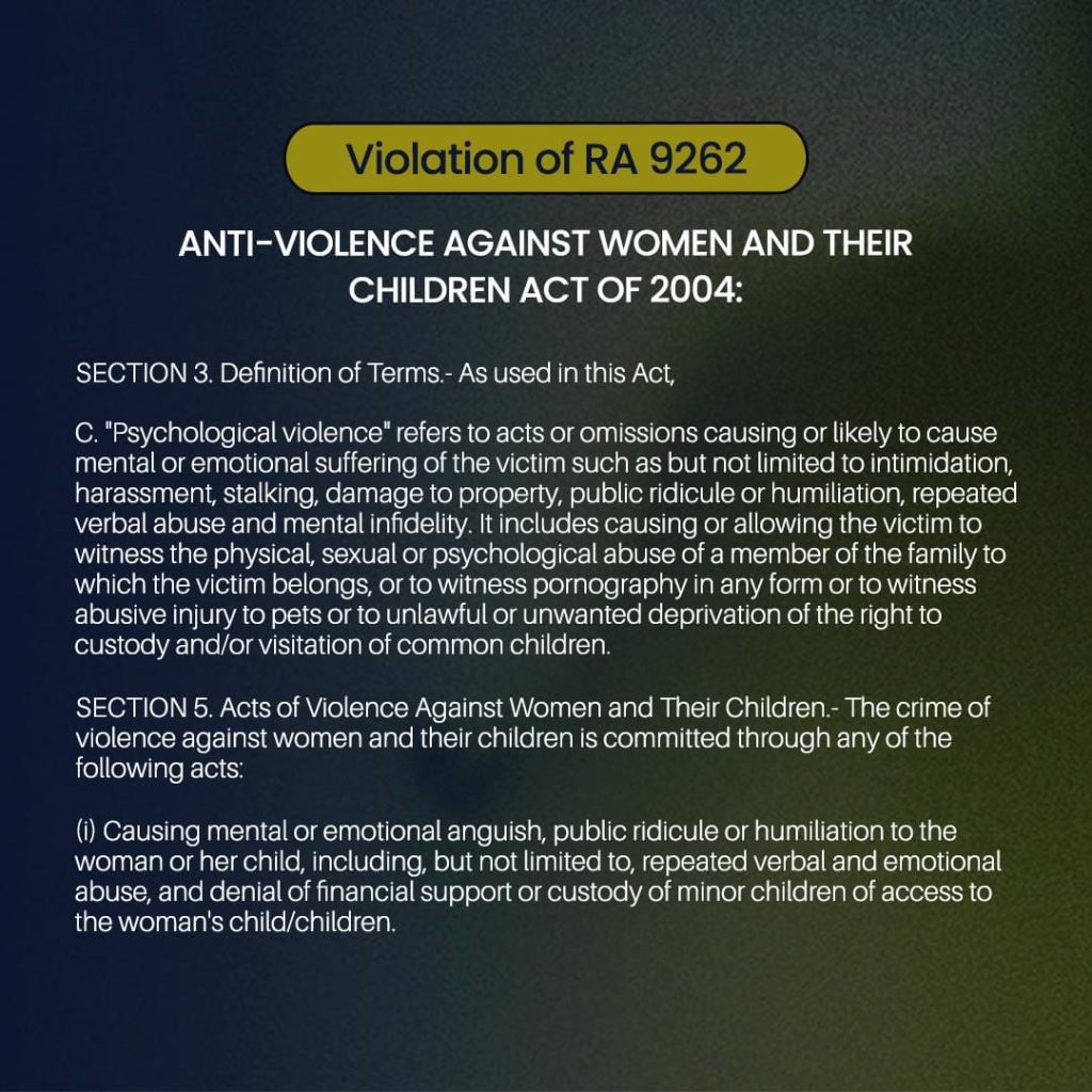 •Violation of RA 9262 or the Anti-Violence Against Women and Their Children Act of 2004